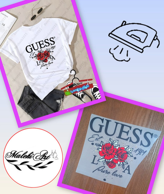 برچسب حرارتی لباس طرح نوشته و گل رز کد : ۴۱۶