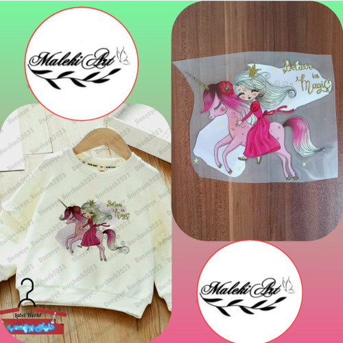 برچسب حرارتی لباس طرح دختر و اسب تک شاخ (جدید) کد : ۶۷